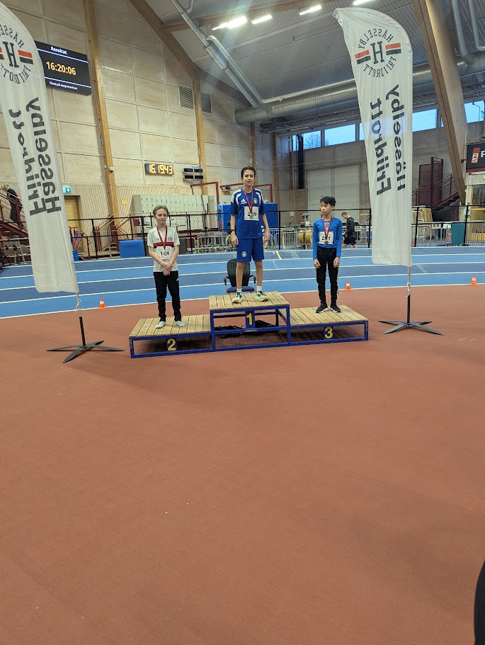 Simon Borgvall kom på tredje plats i pojkar 13 60 m häck- Lars Adsten kom på femteplats i finalen.