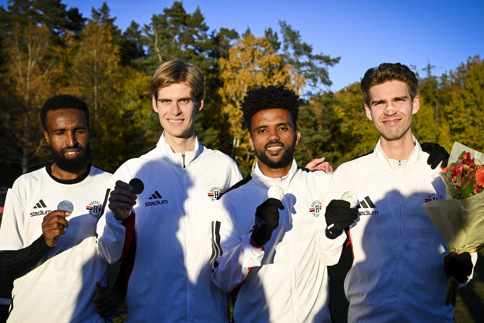 Hässelby fick en flygande start på terräng-SM när herrarnas och damernas korta bana 4 km avgjordes på lördagen. Det blev hela fem medaljer. När långa banan 10 km avgörs på söndagen finns det chans till fler medaljer.