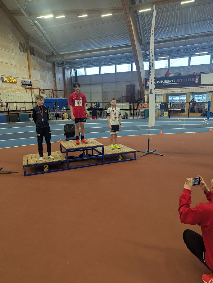 Simon Borgvall kom på tredje plats i pojkar 13 60 m häck- Lars Adsten kom på femteplats i finalen.