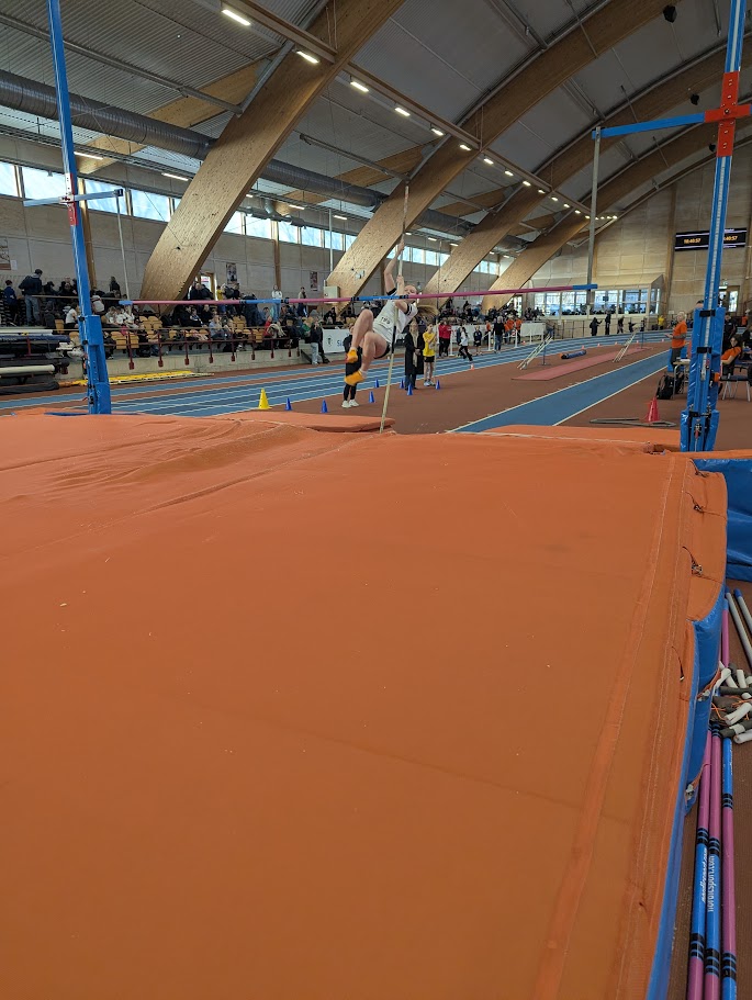 Simon Borgvall slutade på tredje plats 60m häck med 10,79 och satte nytt pb i längd.