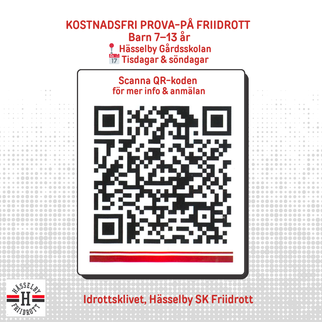 Hässelby Friidrott bjuder in barn i åldern 7–13 år till kostnadsfri prova-på friidrott inom ramen för Idrottsklivet. Träningarna är öppna för alla och fokuserar på rörelseglädje, gemenskap och att testa friidrottens olika grenar på ett lekfullt och tryggt sätt.