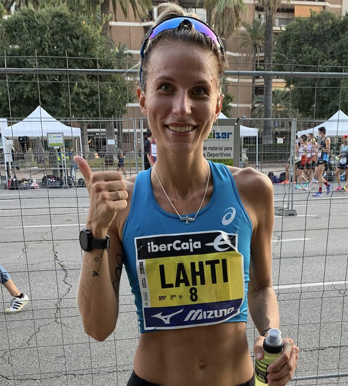 Sarah Lahti, som tidigare i höst vunnit SM halvmaraton (21,1 km) sprang mil-loppet i Valencia som ett led i förberedelsen för hennes debut på maraton, som ska ske i just Valencia den 4 december.